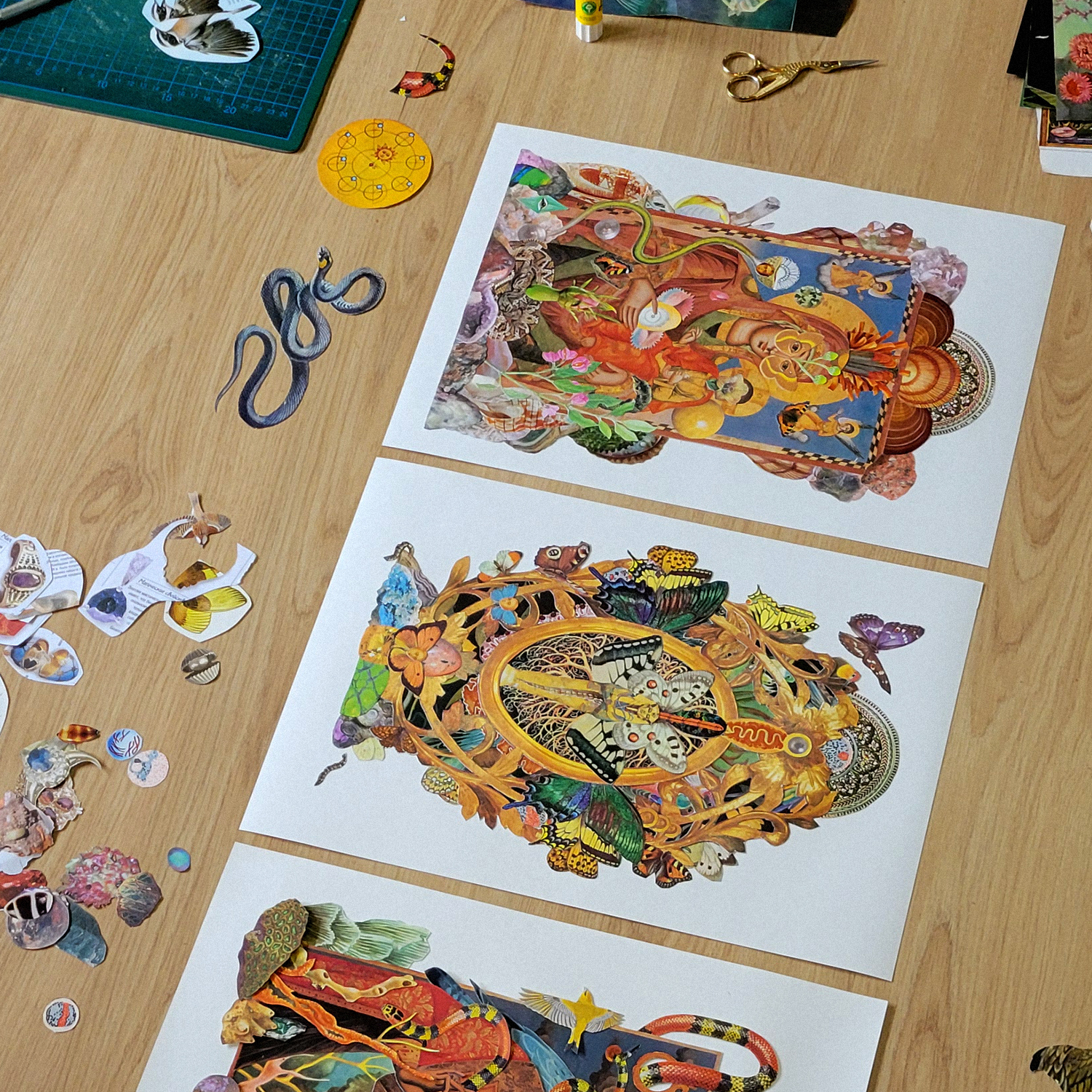 All collages are handmade with secondhand materials found in Tbilisi, and made over a period of 2 months in various places across Sakartvelo (Georgia) - Tbilisi, Batumi, Keda, Tskaltubo, Kutaisi.
