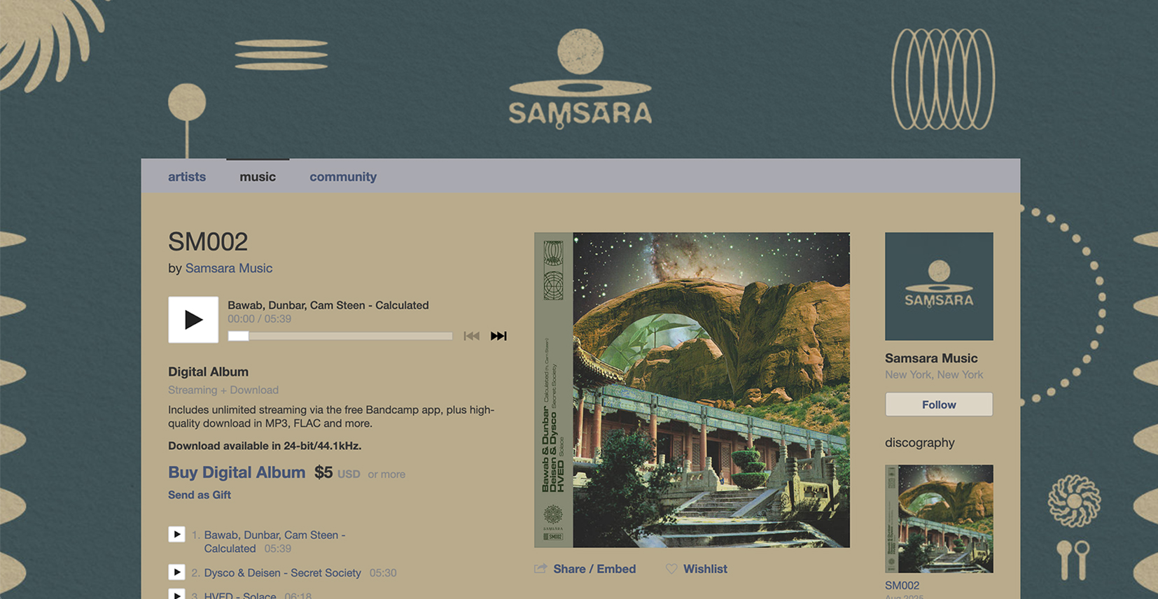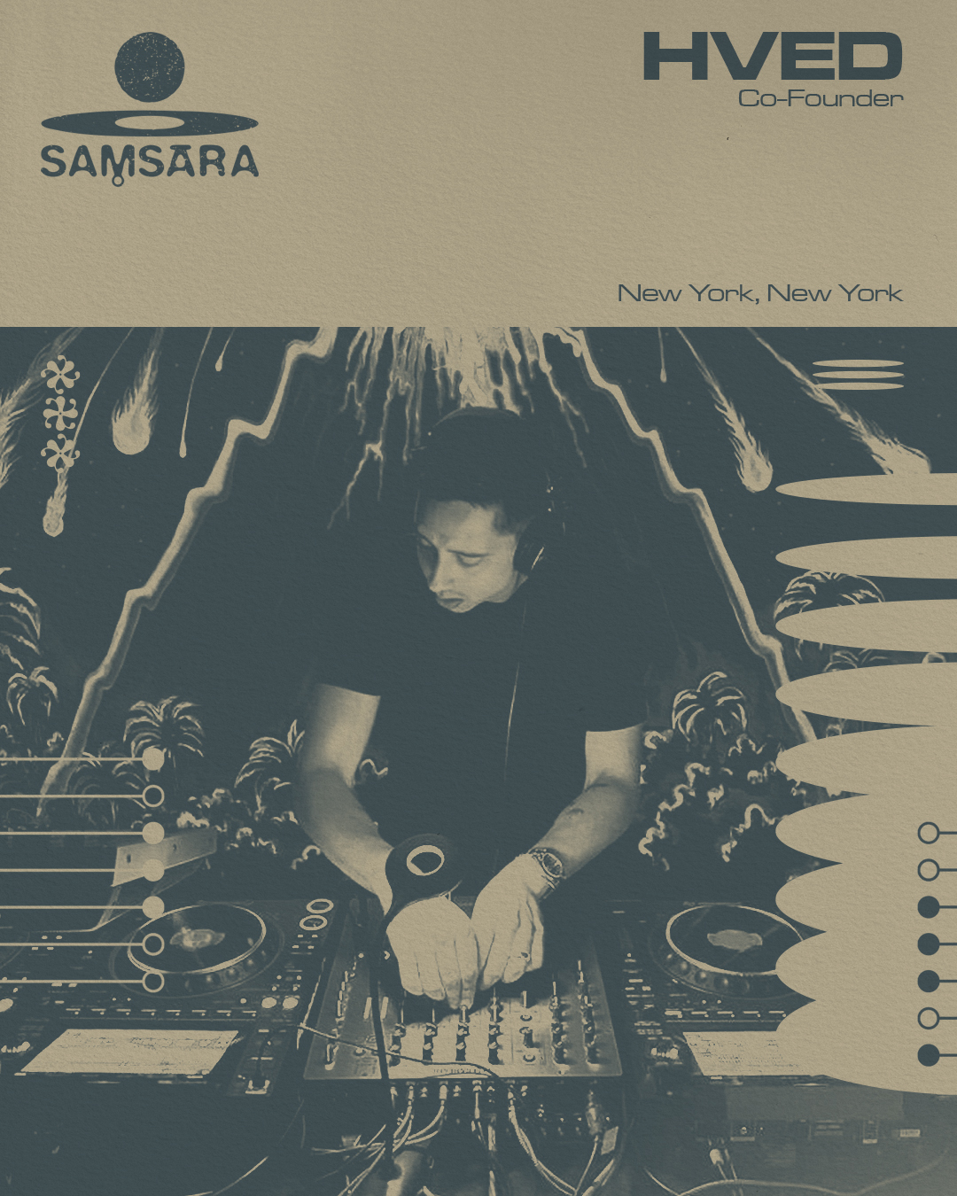 Samsara is a record label and event space devoted to the deeper, emotive edges of electronic music - crafting liminal spaces for immersive soundscapes, slow-burning rhythms, and hypnotic movements.